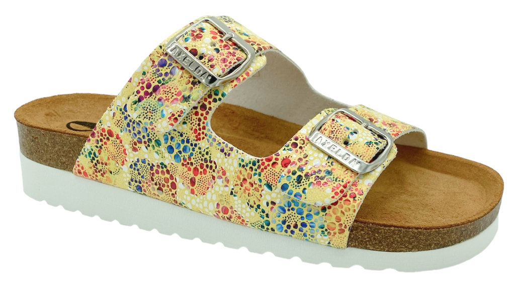 Innersulan är i mocka och naturkorken är lätt och ger dina fötter rätt stöd. Mjukt mellanlager av latex i sula ger både avlastning och extra komfort. 2 breda remmar med metallspännen ger bra stabilitet.