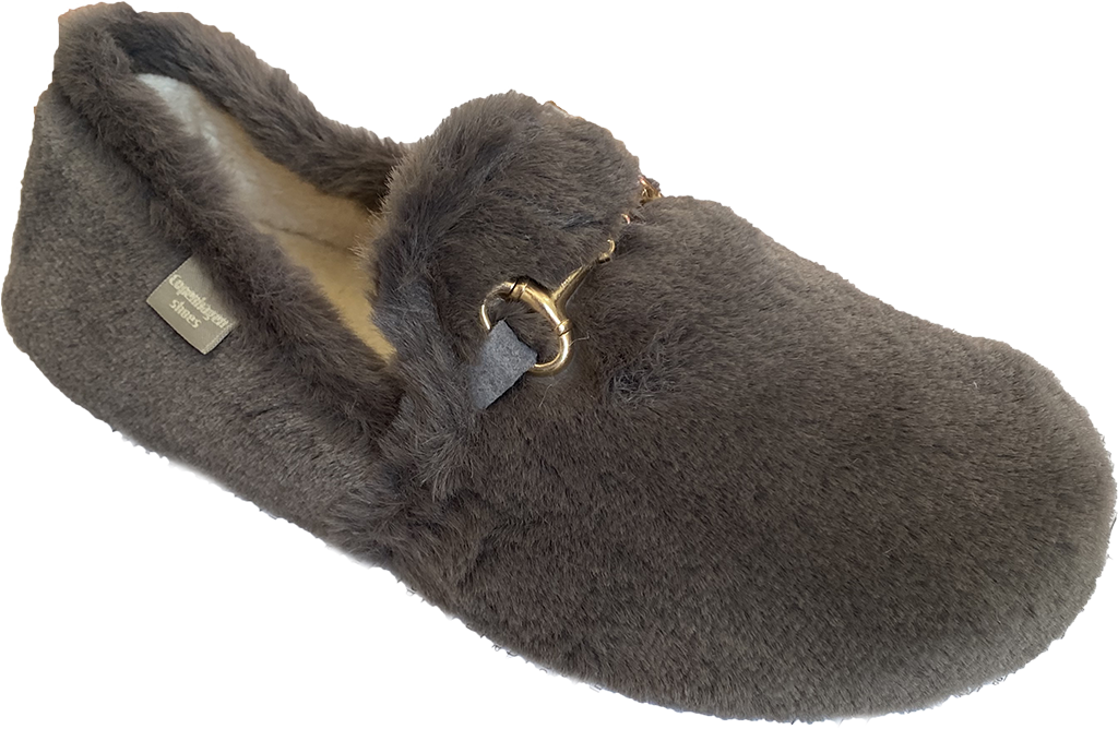 Mjukaste loafers i vegansk päls. Superlätta, söta tofflor med elegans. Guld detalj på framsida.