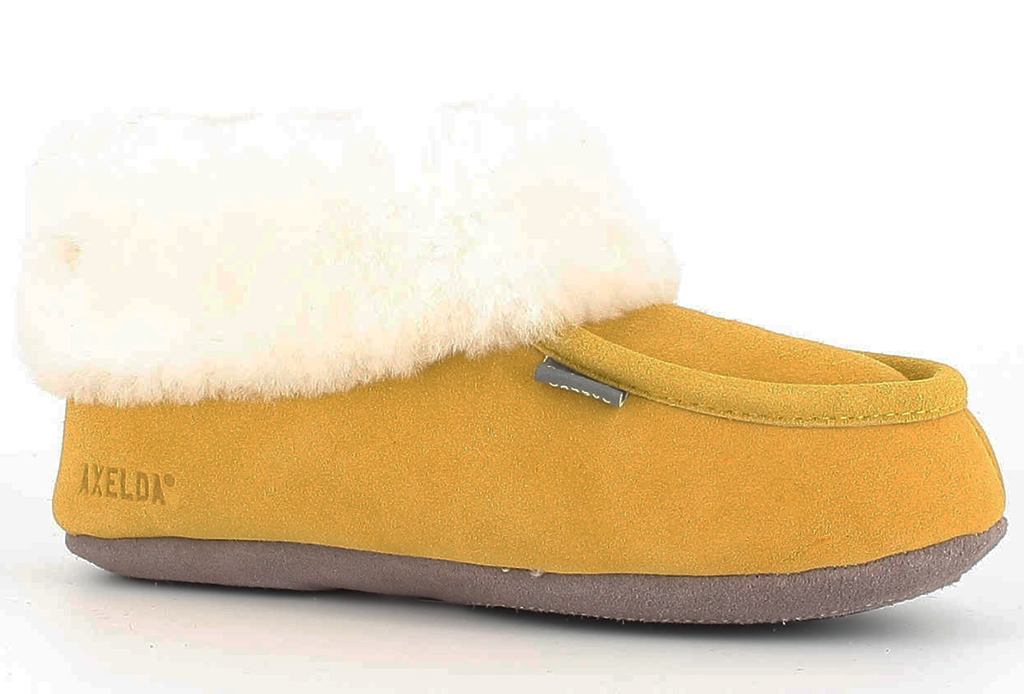 Klassiska tofflor med en hälkfri sula. Ovansidan med dubbla material, mocka på utsidan och skönt fårskinn på insidan ger bättre passform och ökad stabilitet. Tofflorna behåller formen mycket bra. Mjukt och skönt fårskinnsfoder invändigt, mjuk foam i fotbädd för ökad komfort. Vill du ha mera värme kan du vika upp kragen.