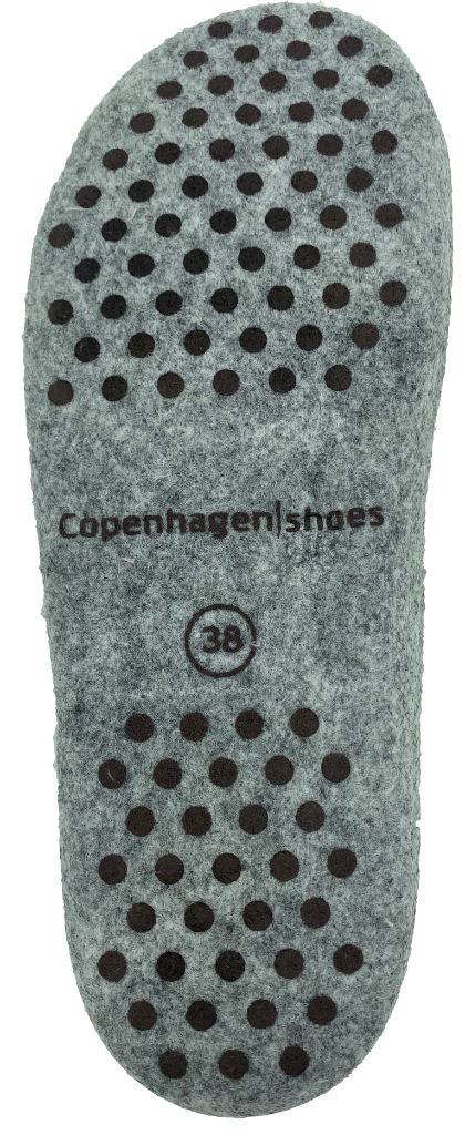 Lätta coola tofflor i ullfilt med foder i fleece.